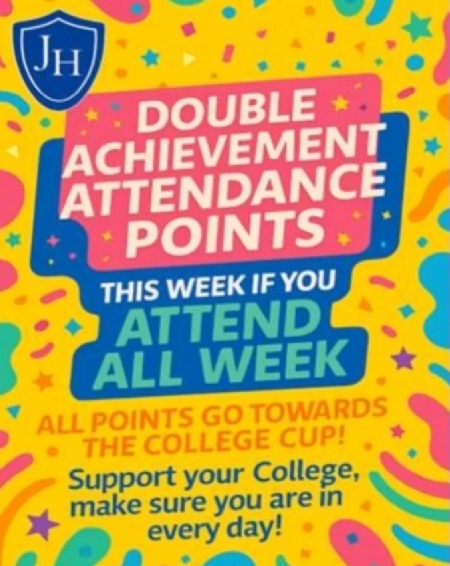 It's #Attendance week next week! Students will be having assemblies on the importance of attendance to school. If students come in every day next week we will double their attendance achievement points! This goes towards helping their College win the College cup!